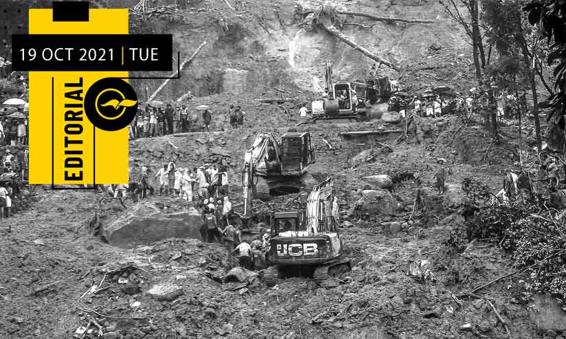 text_fieldsഅപ്രതീക്ഷിതമായ പ്രകൃതിദുരന്തം തീർത്ത പ്രളയക്കയത്തിന് നടുവിലാണിപ്പോൾ കേരളം. പേമാരിയും മണ്ണിടിച്ചിലും ഉരുൾപൊട്ടലുമെല്ലാം ഇൗ ദേശത്തെ തുടർച്ചയായ നാലാം വർഷവും ദുരന്തഭൂമിയാക്കിമാറ്റിയിരിക്കുന്നു. 2018ൽ, 480ലധികം പേരുടെ മരണത്തിൽ കലാശിച്ച മഹാപ്രളയം; 2019ൽ, മലപ്പുറം ജില്ലയിലെ കവളപ്പാറയിലും വയനാട്ടിലെ പുത്തുമലയിലുമുണ്ടായ ഉരുൾപൊട്ടൽ; കഴിഞ്ഞവർഷം ഇടുക്കിലെ പെട്ടിമുടിയിലുണ്ടായ ഉരുൾപൊട്ടൽ. ഇേപ്പാഴിതാ സമാനമായ വാർത്തകൾ കോട്ടയം ജില്ലയിലെ കൂട്ടിക്കലിൽനിന്നും ഇടുക്കിയിലെ കൊക്കയാറിൽനിന്നും കേട്ടുകൊണ്ടിരിക്കുന്നു. ഇൗ മേഖലയിൽ കഴിഞ്ഞ ദിവസങ്ങളിലുണ്ടായ അതിതീവ്ര മഴയിലും ഉരുൾപൊട്ടലിലുമായി ഇതിനകം 28 പേർ മരിച്ചുവെന്നാണ് റിപ്പോർട്ട്.