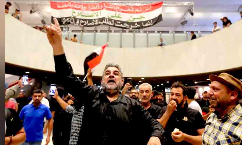 text_fieldsഇറാഖ് പാർലമെന്റിനുള്ളിൽ മുദ്രാവാക്യം മുഴക്കുന്ന പ്രക്ഷോഭകർ