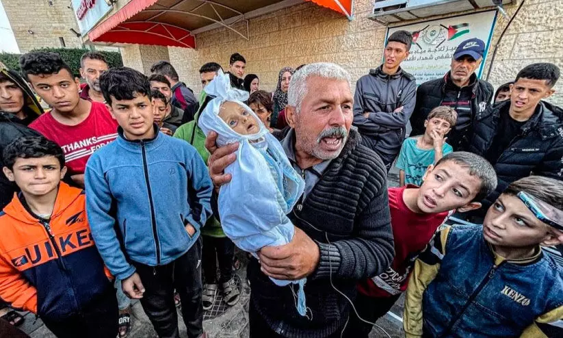 text_fieldsവെടിനിർത്തൽ കാലാവധി അവസാനിച്ചതിന് തൊട്ടുപിന്നാലെ ഗസ്സയിൽ ഇസ്രായേൽ സൈന്യം നടത്തിയ ഭീകരാക്രമണത്തിൽ കൊല്ലപ്പെട്ട കുഞ്ഞിന്റെ മൃതദേഹവുമായി വിലപിക്കുന്ന ബന്ധു Mohammed Al Masri