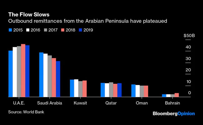 കുടിയേറ്റം നടത്തുന്ന രാജ്യങ്ങൾക്ക് ഒട്ടും ആശ്വാസകരമാകില്ല, ഇൗ പരിഷ്കരണ ദൗത്യങ്ങൾ. 2014ലെ എണ്ണവില തകർച്ചക്കു ശേഷം ജി.സി.സി രാജ്യങ്ങളിൽനിന്ന് പണമൊഴുക്ക് വർധന കണ്ടിട്ടില്ല- (സൗദി അറേബ്യയുടെ കാര്യത്തിൽ അത് ഗണ്യമായി കുറയുകയും ചെയ്തിട്ടുണ്ട്.