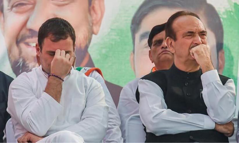 ദേശീയതലത്തിൽ സ്വന്തം ഇടം കോൺഗ്രസ് ബി.ജെ.പിക്ക് വിട്ടുകൊടുത്തിരിക്കുകയാണ്. സംസ്ഥാനങ്ങളിൽ പ്രാദേശിക പാർട്ടികളും അത് കൈയടക്കി. ഇനിയൊരു തിരിച്ചുവരവ് അസാധ്യമായ നിലയിലാണ് കോൺഗ്രസ്. ദുസ്ഥിതിക്ക് രാഹുൽഗാന്ധിയാണ് പ്രധാന ഉത്തരവാദി - പാർട്ടിവിട്ട മുതിർന്ന നേതാവ് ഗുലാം നബി ആസാദ് എ.െഎ.സി.സി അധ്യക്ഷ സോണിയ ഗാന്ധിക്ക് എഴുതിയ കത്തിൽ നിന്ന്: