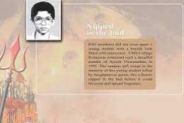 അജീഷിെൻറ രക്തസാക്ഷിത്വം എസ്.എഫ്.ഐ സി.എം.എസ് കാമ്പസില് അക്കാലത്തും രാഷ്ട്രീയമായി ഉപയോഗിച്ചിട്ടില്ല. തൊട്ടുടന് നടന്ന കോളജ് യൂണിയന് തെരഞ്ഞെടുപ്പിലടക്കം അജീഷിന്െറ പടംവെച്ച് വോട്ടു പിടിച്ചിട്ടുമില്ല. രണ്ടു വര്ഷങ്ങള്ക്കകം എ.ബി.വി.പിയുടെ ഹരികുമാര് അവിടെ മാഗസിന് എഡിറ്ററായും ജനറല് സെക്രട്ടറിയായും തുടര്ച്ചയായി ജയിക്കുകയും ചെയ്തു. ആ രക്തസാക്ഷിത്വത്തെ രാഷ്ട്രീയമായി ഉപയോഗിക്കുന്നതില് അന്ന് സി.എം.എസില് എസ്. എഫ്.െഎ പ്രവര്ത്തകനായിരുന്ന ഞാനടക്കം പരാജയപ്പെട്ടുവെന്ന് ചുരുക്കം.