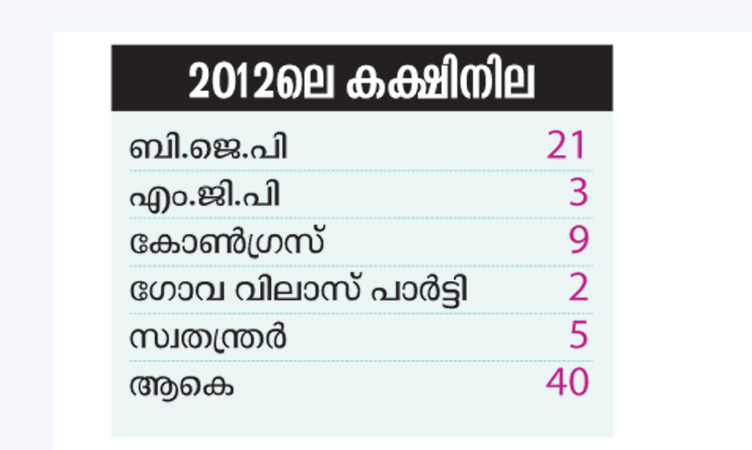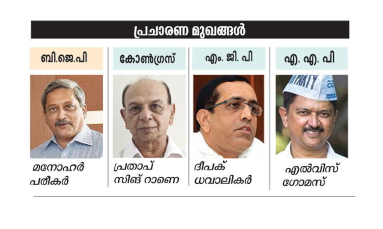 സ്ഥാനാര്ഥികളില് പല പ്രത്യയശാസ്ത്രക്കാരാണ്. ഇവരെ എങ്ങനെ ജനം സ്വീകരിക്കുമെന്നത് പ്രവചിക്കാനാകില്ളെന്ന് നിരീക്ഷകര് പറയുന്നു. നിലവിലെ പ്രതിപക്ഷ നേതാവ് പ്രതാപ് സിങ് റാണെയെ മുന്നില് നിര്ത്തിയാണ് കോണ്ഗ്രസ് ജനങ്ങളിലേക്ക് ചെല്ലുന്നത്. ബി.ജെ.പി 21, എം.ജി.പി മൂന്ന്, കോണ്ഗ്രസ് ഒമ്പത്, ഗോവ വിലാസ് പാര്ട്ടി രണ്ട്, സ്വതന്ത്രര് അഞ്ച് എന്നതായിരുന്നു 40 സീറ്റുള്ള ഗോവ നിയമസഭയില് 2012ലെ നില.