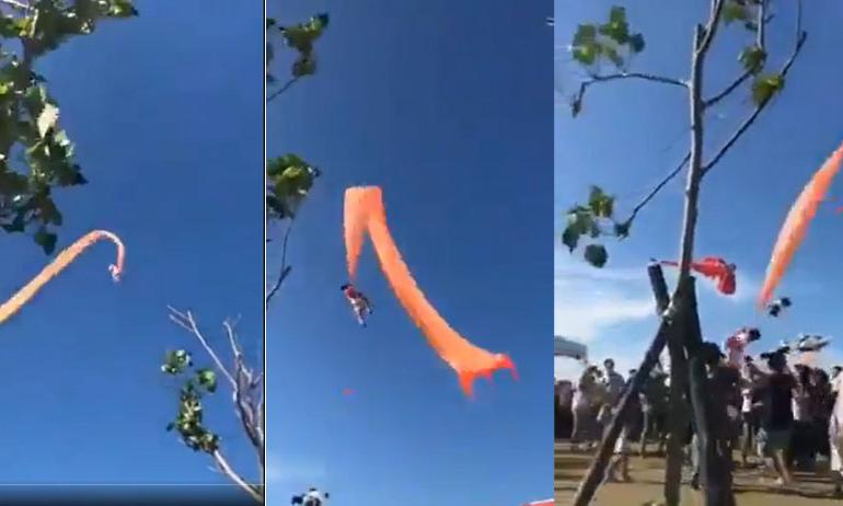 കൂറ്റൻ പട്ടത്തിെൻറ വാലിൽ കുടുങ്ങി കാറ്റിലാടിയുലഞ്ഞ് മൂന്നുവയസ്സുകാരി; ശ്വാസമടക്കിപ്പിടിച്ച് നാട്ടുകാർ