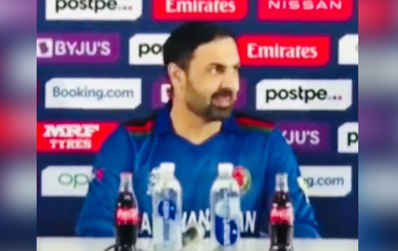 അഫ്ഗാനിസ്ഥാന് നായകൻ മുഹമ്മദ് നബി ടി20 ലോകകപ്പിനിടെയുള്ള വാർത്താസമ്മേളനത്തിൽ സംസാരിക്കുന്നതിെൻറ രസകരമായ വിഡിയോ സോഷ്യൽ മീഡിയയിൽ വൈറലാകുന്നു. സ്കോട്ട്ലന്റിനെതിരെ നടന്ന മത്സരത്തിലെ വിജയത്തിന് ശേഷം മാധ്യമങ്ങളെ കാണാനെത്തിയതായിരുന്നു നബി.