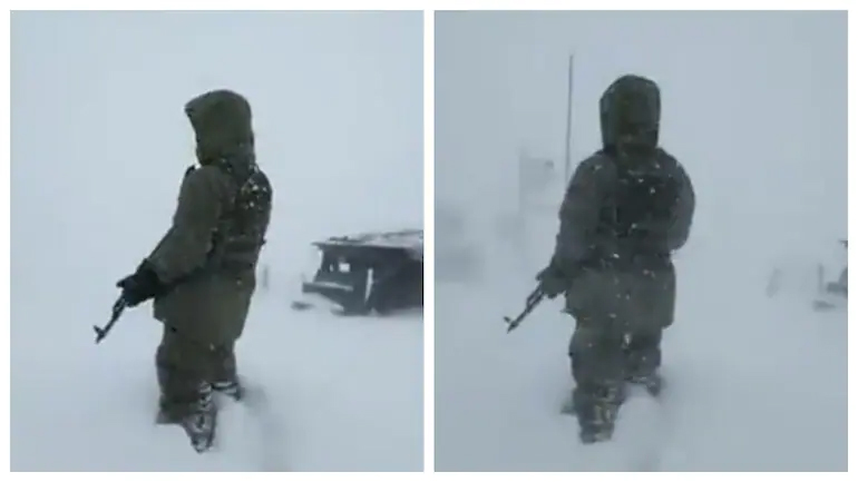 'കൊടും തണുപ്പിലും അടിപതറാത്ത ധീരത'; സൈനികന് സല്യൂട്ടടിച്ച് സോഷ്യൽ മീഡിയ