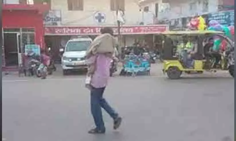 text_fieldsഭോപാൽ: തിരക്കേറിയ റോഡിലൂടെ അപകടത്തിൽ മരിച്ച നാലുവയസുകാരിയുടെ മൃതദേഹം ചുമലിലേറ്റി ബസ് സ്റ്റോപ്പിലേക്ക് നടന്നുനീങ്ങുന്ന യുവാവിന്റെ ചിത്രം ആരുടെയും കരളലിയിക്കുന്നതാണ്. മധ്യപ്രദേശിലെ ആശുപത്രിയിൽ നിന്ന് ആംബുലൻസ് ലഭിക്കാത്തതിനാലാണ് യുവാവ് അനന്തരവളുടെ മൃതദേഹം ചുമലിലേറ്റി വീട്ടിലേക്ക് കൊണ്ടുപോയത്. ഇതിന്റെ വിഡിയോ സമൂഹമാധ്യമങ്ങളിൽ വ്യാപകമായി പ്രചരിച്ചിരുന്നു. ബസ് സ്റ്റോപ്പിൽ നിന്ന് മൃതദേഹവുമായി യുവാവ് തിരക്കേറിയ ബസിലേക്ക് കയറുന്നതും വിഡിയോയിൽ കാണാം.