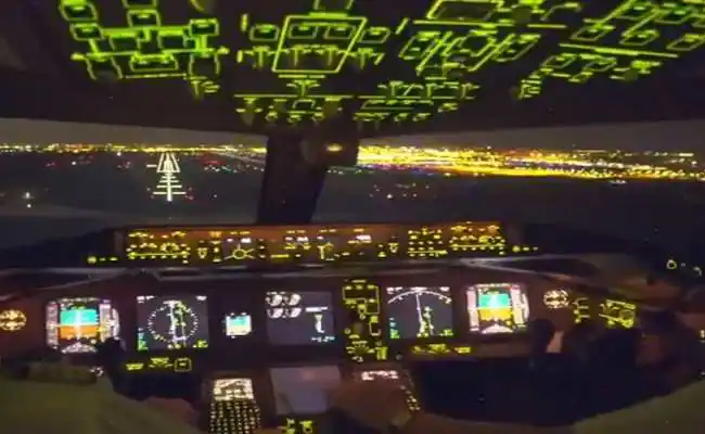 പൈലറ്റുമാർ ഇരിക്കുന്ന കോക്ക്പിറ്റിൽ നിന്നു പകർത്തിയ വിമാന ലാന്റിങ്ങിന്റെ രാത്രികാല ദൃശ്യങ്ങളാണ് വൈറലായിരിക്കുന്നത്. ബോയിങ് 777 വിമാനത്തിന്റെ രാത്രി ലാൻഡിങ് ആണ് വിഡിയോയിലുള്ളത്.