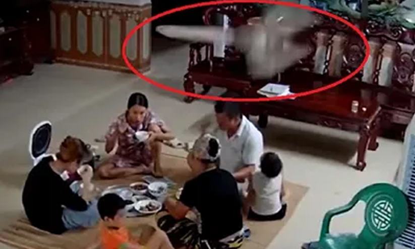 നിലത്ത് പായ വിരിച്ചായിരുന്നു കുടുംബത്തിലെ ആറുപേർ വട്ടത്തിലിരുന്ന് ഭക്ഷണം കഴിച്ചത്. അവർ പരസ്പരം സംസാരിക്കുന്നുമുണ്ട്. പെട്ടന്ന് കുട്ടികളിൽ ഒരാൾ ശബ്ദംകേട്ട് ചുറ്റുംനോക്കുന്നതിനിടെ സീലിങ്ഫാൻ നിലംപതിച്ചു. കുഞ്ഞിന്റെ സമീപത്തിരിക്കുന്ന രണ്ടുപേരുടെ മടിയിലേക്കാണ് ഫാൻ വന്ന് പതിച്ചത്.