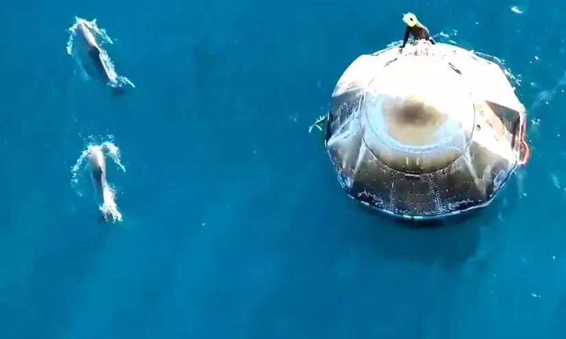 വട്ടമിട്ടു നീന്തി സുസ്വാഗതം, മെക്സിക്കൻ ഉൾക്കടലിൽ അപ്രതീക്ഷിത വരവേൽപ്പ്; സുനിതക്കും വിൽമോറിനുമടുത്ത് ആദ്യമെത്തിയത് ഡോൾഫിനുകൾ, വൈറലായി ദൃശ്യങ്ങൾ