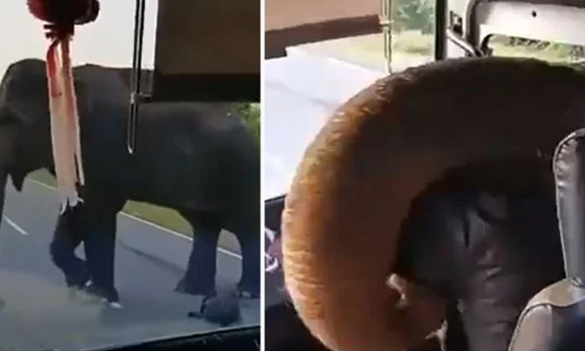 ബസിനകത്തെ പഴക്കുലക്കായി പട്ടാപ്പകൽ ആനയുടെ 'പിടിച്ചുപറി'; വൈറലായി വിഡിയോ