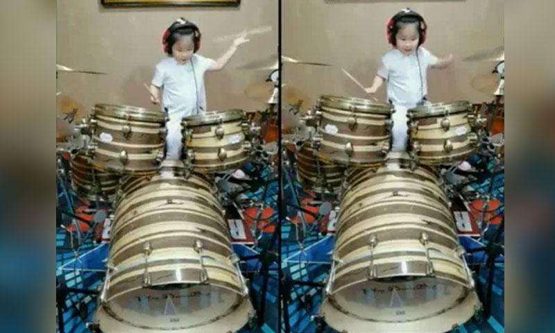 അമേരിക്കൻ ബാസ്കറ്റ്ബാൾ കളിക്കാരനായ റെക്സ് ചാപ്മാൻ വിഡിയോ ട്വിറ്ററിൽ പങ്കുവെച്ചതോടെ ഇൗ അഞ്ചുവയസുകാരിയെ സമൂഹ മാധ്യമങ്ങൾ ഏറ്റെടുക്കുയായിരുന്നു. 'ഫൈവ് ഇയൻ ഒാൾഡ്... അൺറിയൽ' എന്ന കുറിപ്പിനൊപ്പമാണ് റെക്സ് വിഡിയോ പങ്കുവെച്ചത്. പെൺകുട്ടി കവർ പാട്ടിനൊപ്പം താളം പിടിച്ച് ഡ്രം സെറ്റ് വായിക്കുന്നതാണ് വിഡിയോ.