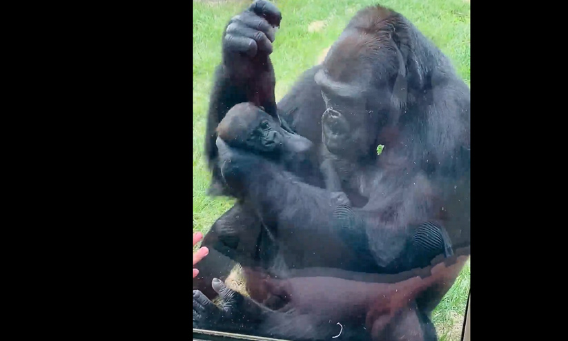 സന്ദർശകർക്ക് മുമ്പിൽ കുഞ്ഞിനെ പ്രദർശിപ്പിക്കുന്ന ഗൊറില്ലയുടെ വിഡിയോ വൈറൽ