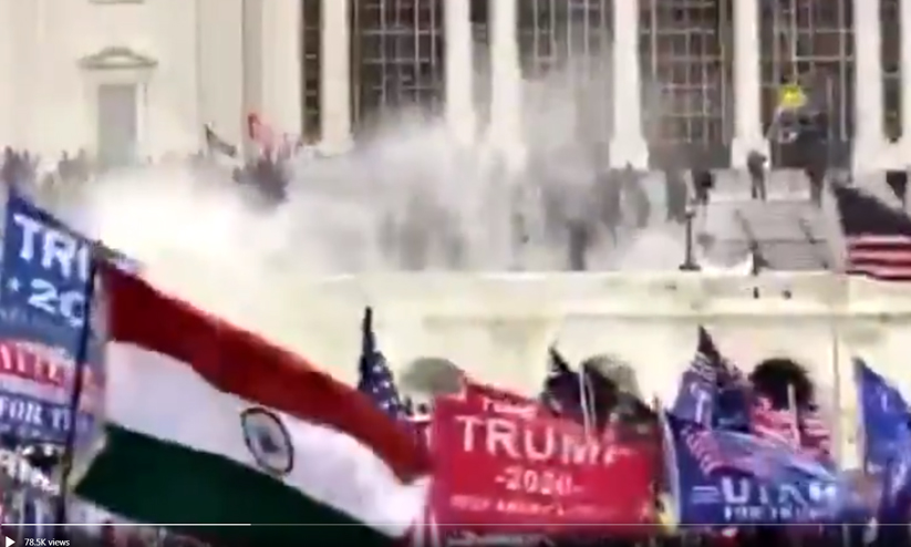 ട്രംപ് അനുകൂലികൾ റിപബ്ലിക്കൻ പാർട്ടി പതാകയും ട്രംപിനെ പിന്തുണച്ചുള്ള ബാനറുകളും കൈയിലേന്തിയാണ് കാപ്പിറ്റോൾ മന്ദിരത്തിലെത്തിയത്. യു.എസ് പതാകയും ചിലരുടെ കൈയിലുണ്ടായിരുന്നു. ഇതിനിടയിലാണ് ഇന്ത്യൻ പതാകയും വിഡിയോ ദൃശ്യങ്ങളിൽ പ്രത്യക്ഷപ്പെട്ടത്.