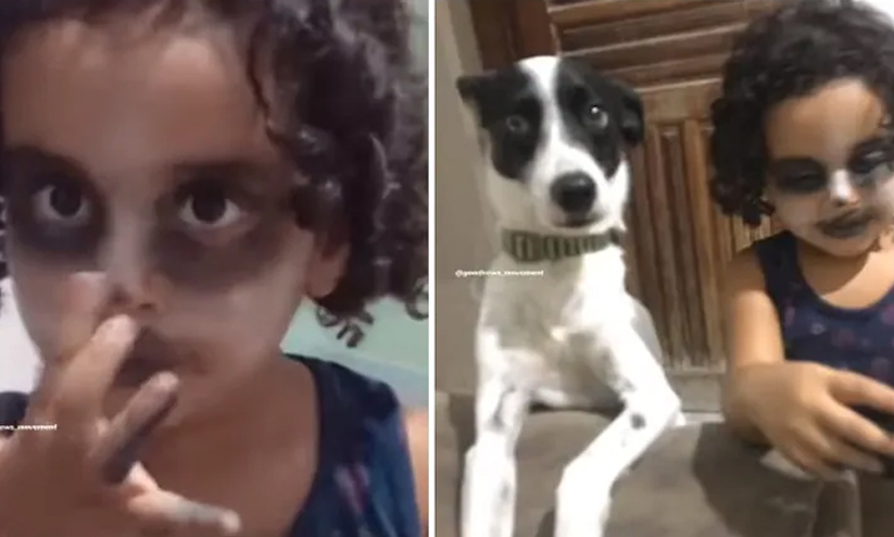 വളർത്തുനായയെ അനുകരിച്ച് മേക്കപ്പ്: വൈറലായി കൊച്ചുകുട്ടിയുടെ മേക്ക് ഓവർ