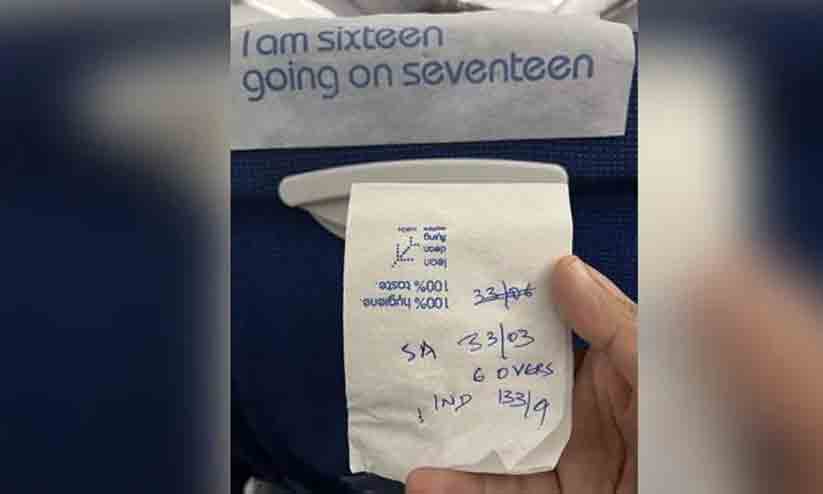 ഞായറാഴ്ച ഇന്ത്യയും ദക്ഷിണാഫ്രിക്കയും തമ്മിലുള്ള ടി20 മത്സരം നടക്കുമ്പോഴായിരുന്നു ഇത്. സ്കോർ അപ്ഡേറ്റിനെക്കുറിച്ച് വിമാനത്തിനിടെ പൈലറ്റ് അയച്ച കുറിപ്പിന്റെ ഫോട്ടോ ട്വിറ്ററിൽ പങ്കുവെച്ചപ്പോൾ വൻ സ്വീകാര്യതയാണ് ലഭിച്ചത്.