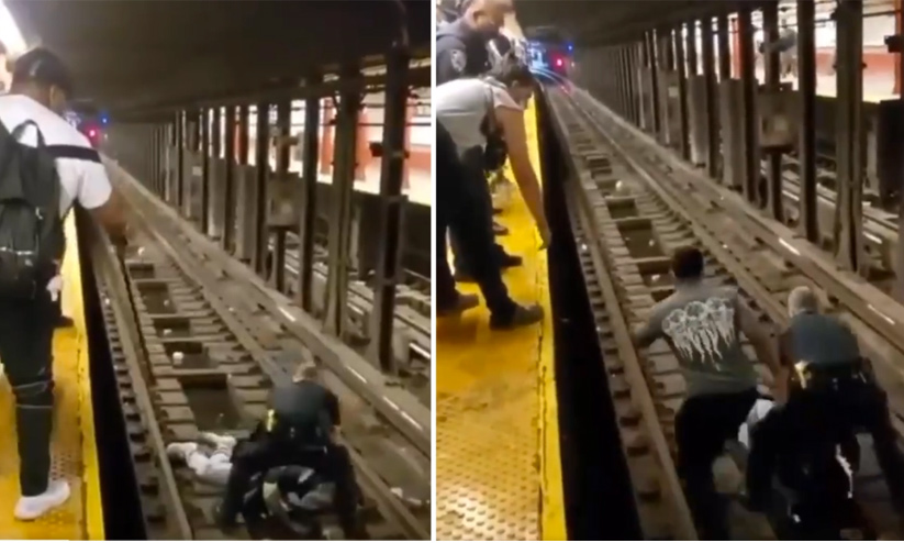സബ്വേയിൽ ബോധരഹിതനായി വീണയാളെ രക്ഷിക്കുന്ന പൊലീസുകാരനും സഹയാത്രികനും; വൈറൽ വിഡിയോ