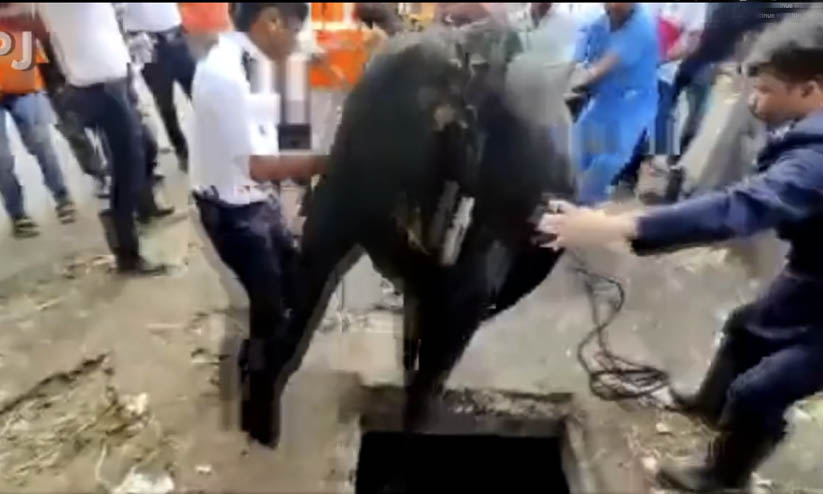 പശു ഗട്ടറിൽ വീഴുന്ന കണ്ട ഒരു പ്രദേശവാസിയാണ് സ്ഥലത്തെ സാമൂഹിക പ്രവർത്തകനായ സച്ചിൻ ഷിങ്കാരെയെ വിവരം അറിയിച്ചത്. തുടർന്ന് സച്ചിൻ പ്രാദേശിക ക്രെയിൻ ഓപ്പറേറ്റർ, അഗ്നിശമനസേനാ ഉദ്യോഗസ്ഥർ, ടിഎംസി എസ്ടിപി പ്ലാന്റ് ജീവനക്കാർ, ടിഎംസിയുടെ എമർജൻസി റെസ്ക്യൂ ടീം എന്നിവരുടെ സഹായം തേടി. തുടർന്ന് നടത്തിയ രക്ഷപ്രവർത്തനത്തിനൊടുവിലാണ് പശുവിനെ പുറത്തെടുത്തത്.