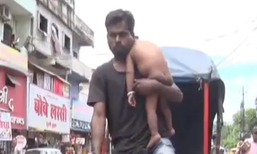 മധ്യപ്രദേശിലെ ജബൽപൂരിലാണ് സംഭവം. ബിഹാർ സ്വദേശി രാജേഷാണ് കുഞ്ഞിനെയുമെടുത്ത് സൈക്കിൾ റിക്ഷ ഓടിച്ച് കുടുംബം പുലർത്തുന്നത്.