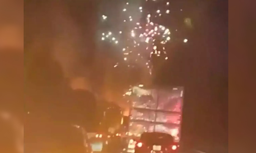 4500 കിലോ പടക്കങ്ങളുമായി വന്ന ട്രക്കിന് നടുറോഡിൽ വെച്ച് തീപിടിച്ചു; പിന്നീട് സംഭവിച്ചത്... -VIDEO