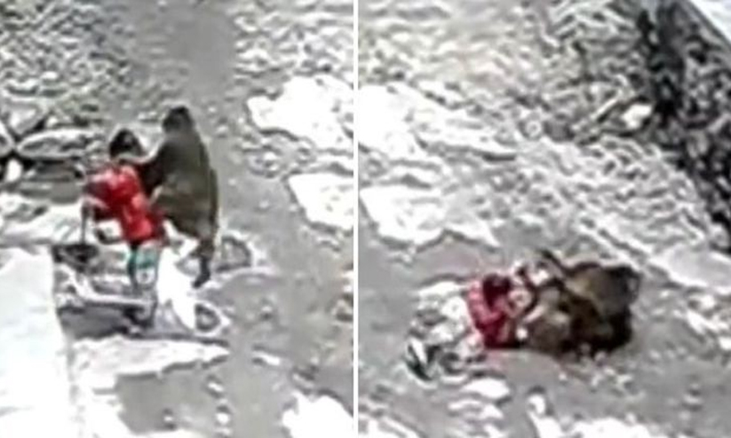 വീടിന് പുറത്ത് തന്റെ സൈക്കിളിൽ കളിച്ചു കൊണ്ടിരിക്കുന്ന പെൺകുട്ടിയെ പതുങ്ങിയെത്തിയ കുരങ്ങൻ മുടിയിൽ പിടിച്ച് വലിക്കുകയായിരുന്നു. പെട്ടെന്നുണ്ടായ ആക്രമണത്തിൽ നിലതെറ്റി താഴെ വീണ പെൺകുട്ടിയെ കുരങ്ങൻ വലിച്ചിഴച്ച് കൊണ്ടുപോകുന്നതും ദൃശ്യങ്ങളിൽ കാണാം. തെക്കുപടിഞ്ഞാറൻ ചൈനയിൽ നിന്നുള്ളതാണ് ദൃശ്യങ്ങൾ.
