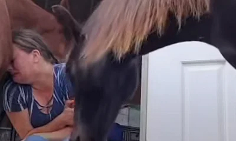 സങ്കടപ്പെട്ടിരിക്കുന്ന യജമാനത്തിയെ ആശ്വസിപ്പിക്കുന്ന കുതിര, വിഡിയോ വൈറൽ