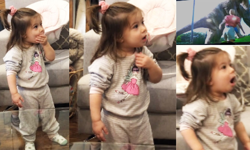 രണ്ട് വയസുള്ള പെൺകുട്ടി ടെലിവിഷനിലൂടെ ജുറാസിക് പാർക്ക് കാണുന്നതാണ് വിഡിയോയിൽ കാണിക്കുന്നത്. സിനിമയിലെ ദിനോസർ രംഗം വരുമ്പോൾ അവൾ കൗതുകത്തോടെ വാ തുറന്നു നിൽക്കുന്നതും പരിഭ്രാന്തയായി അങ്ങോട്ടും ഇങ്ങോട്ടും ഓടുന്നതുമെല്ലാം ചിരിയോടെയല്ലാതെ കണ്ടുതീർക്കാനാവില്ല.
