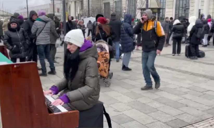 യുക്രെയ്നിൽനിന്നും കണ്ണു നനയിക്കുന്ന കാഴ്ചകളാണ് സമൂഹമാധ്യമങ്ങളിലൂടെ ഓരോ ദിവസവും പ്രചരിക്കപ്പെടുന്നത്. അപശ്രുതികൾക്കിടയിലും ലിവിവ് റെയിൽവേ സ്റ്റേഷനിൽ നിന്നും പിയാനോ വായിക്കുന്ന യുവതിയുടെ ദൃശ്യങ്ങളാണ് ഇപ്പോൾ സമൂഹ മാധ്യമങ്ങളിൽ വ്യാപകമായി പ്രചരിക്കുന്നത്.