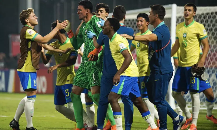 text_fieldsദോഹ: പെനാൽറ്റി ഷൂട്ടൗട്ടിലേക്ക് നീണ്ട ടൂർണമെന്റിൽ പരാഗ്വേക്കെതിരെ ബ്രസീലിന് ആശ്വാസ ജയം. നിശ്ചിതസമയത്ത് ഇരു ടീമുകളും ഗോളൊന്നും നേടാതെ പിരിയുകയായിരുന്നു. തുടർന്ന് പെനാൽറ്റി ഷൂട്ടൗട്ടിലേക്ക് കളി നീണ്ടപ്പോൾ ആദ്യ അഞ്ച് പെനാൽറ്റി ഷൂട്ടൗട്ട് അടിച്ച് ബ്രസീൽ ജയം സ്വന്തമാക്കി. പ്രീ ക്വാർട്ടറിലേക്ക് പ്രവേശിച്ച ബ്രസീലിന് കരുത്തരായ ഫ്രാൻസ് ആയിരിക്കും എതിരാളികൾ. അതേസമയം, കാനഡക്കെതിരെ പെനാൽറ്റി ഷൂട്ടൗട്ട് വിജയത്തോടെ അയർലൻഡ് പ്രീ ക്വാർട്ടറിലേക്ക് പ്രവേശിച്ചു. നിശ്ചിതസമയത്ത് ടൂർണമെന്റ് പൂർത്തിയായപ്പോൾ ഇരു ടീമുകളും ഓരോ ഗോൾ നേടി സമനിലയിൽ പിരിയുകയായിരുന്നു.
