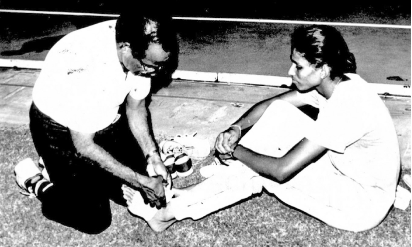 text_fieldsപി.ടി. ഉഷക്ക് മത്സരത്തിനിടെ പരിക്കേറ്റപ്പോൾ ബാേൻറജ് കെട്ടിക്കൊടുക്കുന്ന കോച്ച് ഒ.എം. നമ്പ്യാർ (ഫയൽ ഫോട്ടോ)