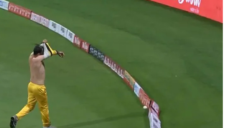 ഫീൽഡ് ചെയ്യുന്നതിനിടെ ജഴ്സിമാറ്റുേമ്പാൾ പന്ത് വന്നാൽ എന്ത് ചെയ്യും?. ഒന്നും ചെയ്യാനില്ല. അബൂദബി ടി10 ക്രിക്കറ്റ് ലീഗിനിടെയുള്ള യു.എ.ഇ ദേശീയതാരം രോഹൻ മുസ്തഫയുടെ വിഡിയോ സമൂഹമാധ്യമങ്ങളിൽ വൈറലാകുകയാണ്.