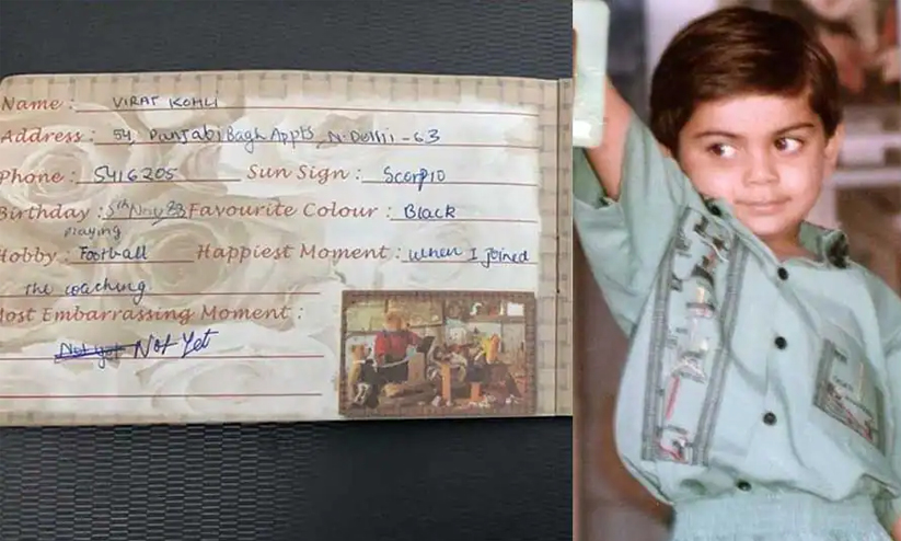 ശനിയാഴ്ച രാത്രി ഇത്തരത്തിൽ ഒരു ചിത്രം സോഷ്യൽ മീഡിയയിൽ വൈറലായി. സ്കൂൾ കാലത്ത് കോഹ്ലി പൂരിപ്പിച്ച ഒരു സ്ലാംബുക്കിന്റെ ചിത്രമായിരുന്നു അത്. കോഹ്ലിയുടെ സുഹൃത്തായ ഷലജ് സോൻദിയാണ് ചിത്രം ഇൻസ്റ്റഗ്രാമിൽ പങ്കുവെച്ചത്.