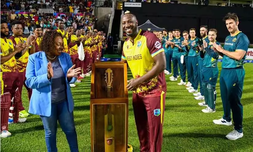 text_fieldsകിങ്സ്റ്റൺ: കൈയിൽ ബാറ്റെടുത്താൽ വെളിച്ചപ്പാടായി മാറുന്ന ആന്ദ്രെ റസൽ, കരിയറിന്റെ ഒടുക്കത്തിലും പതിവു തെറ്റിച്ചില്ല. ട്വന്റി20 കരിയറിലെ അവസാന മത്സരത്തിനിറങ്ങിയ വിൻഡീസ് സൂപ്പർ താരം, സിക്സറും ബൗണ്ടറികളും കൊണ്ടു തന്നെ അതിശയ കരിയറിന് ഉജ്വല സമാപനം കുറിച്ചു. ട്വന്റി20 ഫോർമാറ്റിലെ വെടിക്കെട്ട് വീരനായ റസലിന്റെ വിടവാങ്ങൽ മത്സരത്തിൽ ആ ബാറ്റിൽ നിന്നും പിറന്നത് നാല് സിക്സുകളും രണ്ട് ബൗണ്ടറിയും ഉൾപ്പെടെ 36 റൺസ്. അതിൽ ആദ്യ ഷോട്ട് പറന്നിറങ്ങിയതാകട്ടെ ഗാലറിയിലെ സൈറ്റ് സ്ക്രീനും തുളച്ച്. ആസ്ട്രേലിയക്കെതിരായ പരമ്പരയിലെ രണ്ടാം മത്സരമായിരുന്നു റസലിന്റെ വിടവാങ്ങൽ എന്ന നിലയിൽ ശ്രദ്ധേയമായത്. ബാറ്റും ബൗളും കൊണ്ട് മിന്നും റെക്കോഡുകൾ സൃഷ്ടിച്ച താരം, 15 വർഷത്തെ ട്വന്റി20 പോരാട്ടത്തിന് സമാപനം കുറിക്കാനിറങ്ങിയപ്പോൾ സബീന പാർക്കിൽ സഹതാരങ്ങൾ ഹൃദ്യമായി തന്നെ യാത്രയയപ്പു നൽകി.