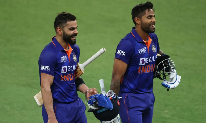 ആദ്യ പത്തോവറിൽ 70 റൺസ് മാത്രമെടുക്കാനേ ഇന്ത്യക്ക് കഴിഞ്ഞുള്ളൂ. സ്കോർ 38ൽ എത്തിയപ്പോൾ നായകൻ രോഹിത് (13 പന്തിൽ 21) പുറത്തായി. ശുക്ലയുടെ പന്തിൽ ഐസാസിന് പിടികൊടുക്കുകയായിരുന്നു. 13ാം ഓവറിൽ മുഹമ്മദ് ഗസൻഫാറിന്റെ പന്തിൽ വിക്കറ്റ് കീപ്പർക്ക് പിടികൊടുത്ത് രാഹുലും (39 പന്തിൽ 36) മടങ്ങി. പിന്നീടായിരുന്നു കോഹ്ലി-സൂര്യകുമാർ കൂട്ടുകെട്ടിന്റെ അഴിഞ്ഞാട്ടം. കോഹ്ലി വളരെ ശ്രദ്ധയോടെ ഒരറ്റം കാത്തപ്പോൾ സൂര്യകുമാർ അഴിഞ്ഞാടി. അവസാന ഓവറിൽ നാല് സിക്സറുകൾ പറത്തിയ സൂര്യകുമാർ ആകെ ആറ് തവണ പന്ത് ഗാലറിയിലെത്തിച്ചു.