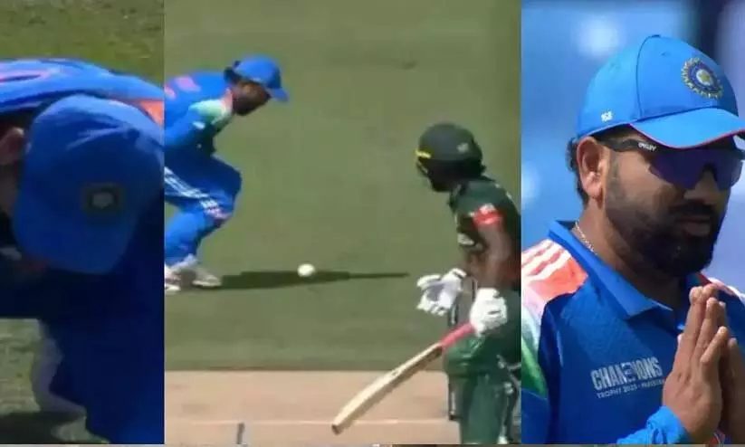 ചാമ്പ്യൻസ് ട്രോഫി ചരിത്രത്തിൽ ഹാട്രിക് നേടുന്ന ആദ്യ സ്പിന്നറാകാനുള്ള അക്സർ പട്ടേലിന്റെ അവസരം നായകൻ രോഹിത് ശർമ നഷ്ടപ്പെടുത്തുന്നതിനും മത്സരം സാക്ഷിയായി. ബംഗ്ലാദേശ് ഇന്നിങ്സിലെ ഒമ്പതാം ഓവറിലാണ് സംഭവം. രണ്ടാം പന്തിൽ 25 പന്തിൽ 25 റൺസെടുത്ത ഓപ്പണർ തൻസീദ് ഹസൻ പുറത്ത്. ബംഗ്ലാദേശ് താരത്തിന്റെ ബാറ്റിൽ എഡ്ജായ പന്ത് രാഹുൽ പിടിച്ചെടുത്തു. അമ്പയർ ആദ്യം ഔട്ട് അനുവദിച്ചില്ലെങ്കിലും ഇന്ത്യൻ താരങ്ങൾ അപ്പീൽ തുടർന്നതോടെ വിക്കറ്റ് നൽകി. തൊട്ടടുത്ത പന്തിൽ മുഷ്ഫിഖർ റഹീമും സമാന രീതിയിൽ ഗോൾഡൻ ഡക്കായി.