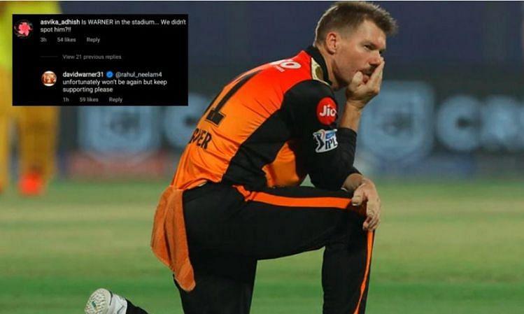 വാർണറെ സ്റ്റേഡിയത്തിൽ കാണാനില്ലെന്ന് സമൂഹമാധ്യമങ്ങളിൽ ചോദ്യവുമായി നിരവധി പേരെത്തിയതിന് പിന്നാലെ മറുപടിയുമായി താരമെത്തി. '' നിർഭാഗ്യമെന്ന് പറയട്ടെ. തുടർന്നും ഡഗ്ഔട്ടിൽ ഉണ്ടാകില്ല. പിന്തുണക്കുന്നത് തുടരുക'' -വാർണർ പറഞ്ഞു.