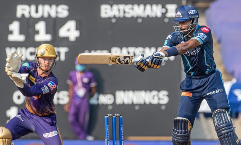 മികച്ച സ്കോറിലേക്ക് പോകുമെന്ന് തോന്നിച്ച ഇന്നിങ്സായിരുന്നു ഗുജറാത്തിന്റേത്. എന്നാൽ, 133 റൺസിലെത്തിനിൽക്കെ, തുടരെ വിക്കറ്റുകൾ കൊഴിയുകയായിരുന്നു. റസലിന്റെ ഒരോവറിലെ നാല് വിക്കറ്റ് പ്രകടനവും ടിം സൗത്തിയുടെ മൂന്ന് വിക്കറ്റ് പ്രകടനവുമാണ് ഗുജറാത്തിനെ വലിയ സ്കോറിലേക്ക് പോകുന്നതിൽ നിന്നും തടുത്തത്. നായകൻ ഹർദിക് പാണ്ഡ്യയുടെ (67) ചെറുത്തുനിൽപ്പിലൂടെയാണ് ടീം ഭേദപ്പെട്ട സ്കോർ നേടിയത്. റസൽ അഞ്ച് റൺസ് മാത്രം വഴങ്ങിയാണ് നാല് വിക്കറ്റുകൾ വീഴ്ത്തിയത്. ടിം സൗത്തി 24 റൺസ് വഴങ്ങി.
