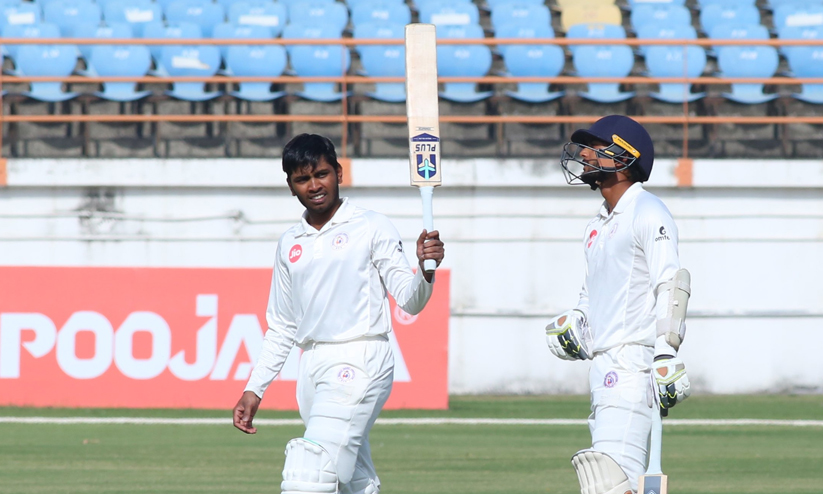 ടോസ് നേടി എതിരാളികളെ ബാറ്റിങ്ങിനയച്ച കേരളത്തിന്റെ തുടക്കം ഗംഭീരമായിരുന്നു. എതിരാളികളുടെ മുൻനിരയെ തകർത്ത് നാലിന് 33 എന്ന സ്കോറിലേക്ക് തള്ളിയിട്ട കേരള ബൗളർമാരും ഫീൽഡർമാരും പക്ഷേ പിന്നീട് കളി കൈവിട്ടു. 90 റൺസാവുമ്പോഴേക്കും അഞ്ചാംവിക്കറ്റും വീഴ്ത്തിയെങ്കിലും ആറാം വിക്കറ്റിൽ പട്ടേലുമാർ വമ്പൻ കൂട്ടുകെട്ടുയർത്തി. 234 റൺസാണ് ഇരുവരും കൂട്ടിച്ചേർത്തത്. അതിനിടെ 37ൽ നിൽക്കെ ഹേത് പട്ടേലിനെ ജലജ് സക്സേനയുടെ പന്തിൽ സ്ലിപ്പിൽ വത്സൽ ഗോവിന്ദ് കൈവിട്ടത് കേരളത്തിന് തിരിച്ചടിയായി.