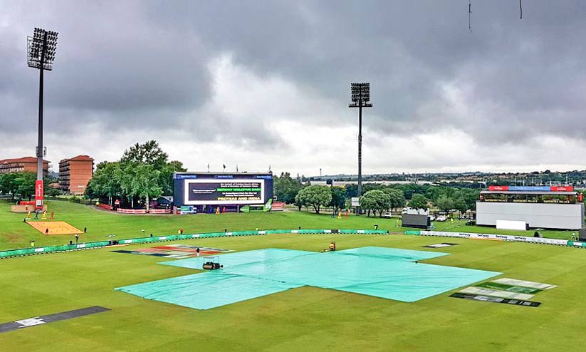 മഴയെ തുടർന്ന് സെഞ്ചൂറിയനിലെ പിച്ച് മൂടിയിരിക്കുന്നു
