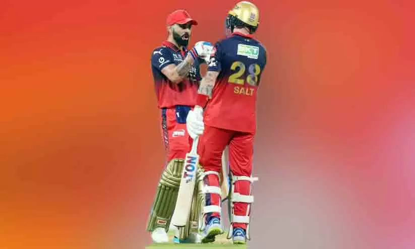 text_fieldsആർ.സി.ബി ഓപണർമാരായ വിരാട് കോഹ്ലിയും ഫിൽ സാൾട്ടും ബാറ്റിങ്ങിനിടെ