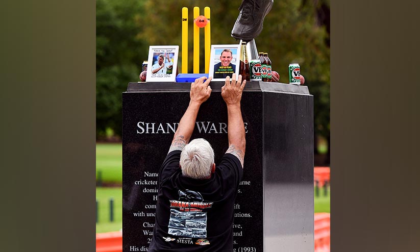 text_fieldsമെൽബൺ ക്രിക്കറ്റ് ഗ്രൗണ്ടിനുപുറത്തെ ഷെയ്ൻ വോണിന്റെ പ്രതിമക്കടുത്ത് അദ്ദേഹത്തിന്റെ ഫോട്ടോ വെക്കുന്ന ആരാധകൻ