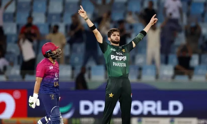text_fieldsദുബൈ: അനിശ്ചിതത്വങ്ങൾക്കൊടുവിൽ അരങ്ങേറിയ മത്സരത്തിൽ യു.എ.ഇക്കെതിരെ 41 റൺസിന്റെ ജയവുമായി പാകിസ്താൻ ഏഷ്യാകപ്പ് സൂപ്പർ ഫോർ റൗണ്ടിലേക്ക് കടന്നു. ഇന്ത്യയുമായുള്ള മത്സരത്തിനിടെ ഉയർന്ന ഹസ്തദാന വിവാദത്തിന്റെ പശ്ചാത്തലത്തിൽ മാച്ച് റഫറിയെ മാറ്റണമെന്ന ആവശ്യം നിരസിച്ച ഐ.സി.സി നടപടിയിൽ പ്രതിഷേധിച്ച് പാകിസ്താൻ ടൂർണമെന്റിൽനിന്ന് പിന്മാറുമെന്ന ഭീഷണി ഉയർത്തിയിരുന്നു. പാക് ടീം സ്റ്റേഡിയത്തിൽ എത്താൻ വൈകിയതോടെ ഒരു മണിക്കൂർ വൈകിയാണ് ബുധനാഴ്ച രാത്രി മത്സരം ആരംഭിച്ചത്. പാകിസ്താൻ കളി ജയിച്ചതോടെ വീണ്ടും ഇന്ത്യക്കെതിരെ മത്സരത്തിന് കളമൊരുങ്ങി. സൂപ്പർ ഫോർ റൗണ്ടിൽ ഞായറാഴ്ചയാണ് ഇന്ത്യ -പാക് പോരാട്ടം.