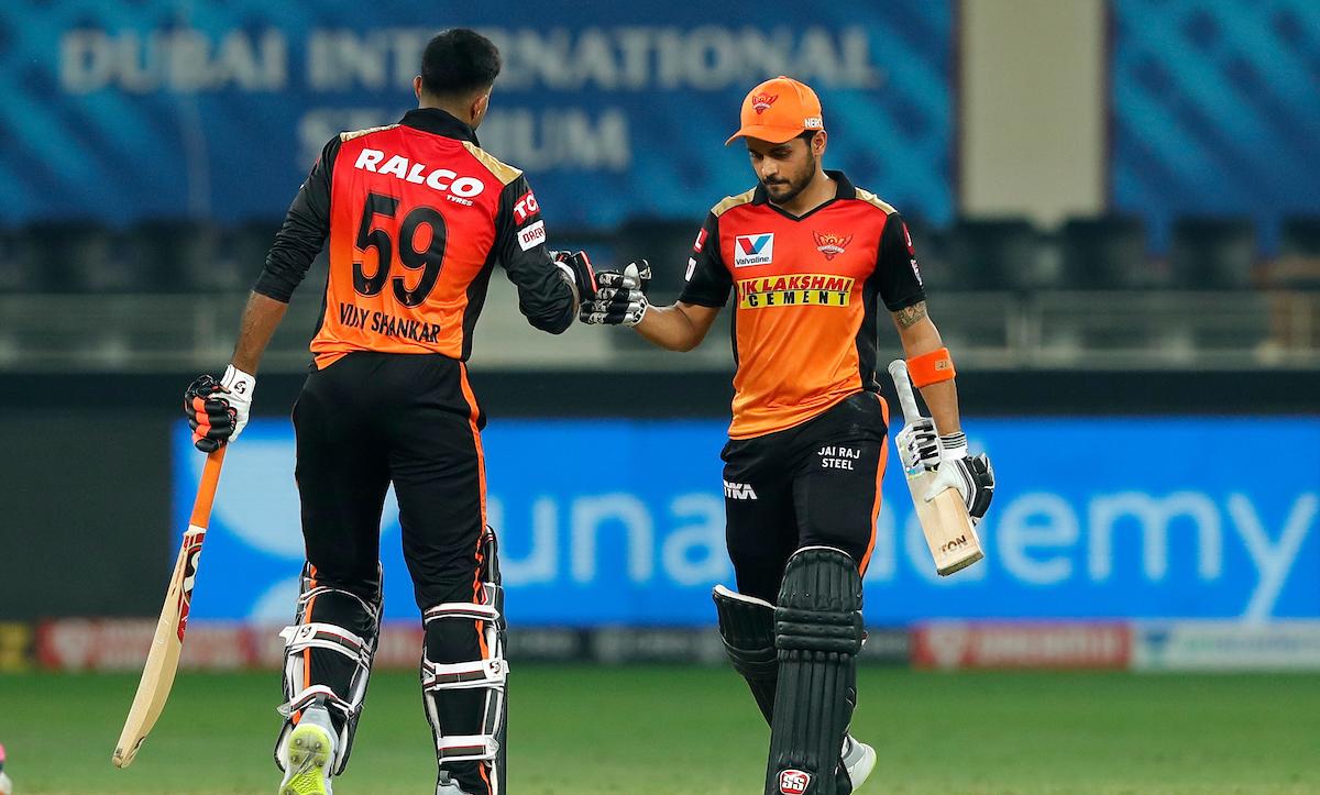 ചെറിയ വിജയലക്ഷ്യം പിന്തുടർന്നിറങ്ങിയ ഹൈദരാബാദിെൻറ തുടക്കം തകർച്ചയോടെയായിരുന്നു. സ്റ്റാർ ബാറ്റ്സ്മാൻമാരായ ഡേവിഡ് വാർണറും ജോണി ബാരിസ്റ്റോയും ജോഫ്ര ആർച്ചറുടെ പന്തുകളിൽ വേഗം കൂടാരം കയറി. എന്നാൽ പിന്നാലെയെത്തിയ മനീഷ് പാണ്ഡേ മത്സരവും ദിവസവും തേൻറതാക്കി മാറ്റുകയായിരുന്നു. വിജയ് ശങ്കറിനെ ഒരറ്റത്ത് നിർത്തി അടിച്ചുതകർത്ത പാണ്ഡേ 47 പന്തുകളിൽ 83 റൺസെടുത്തു. 51 പന്തിൽ 52 റൺസെടുത്ത ശങ്കർ സ്ട്രൈക്ക് റൊട്ടേറ്റ് ചെയ്തും ആവശ്യ സമയത്ത് ബൗണ്ടറികളടിച്ചും പാണ്ഡേക്ക് ഒത്തപങ്കാളിയായി. നാലാംവിക്കറ്റിൽ ഇരുവരും ചേർന്ന് പടുത്തുയടർത്തിയത് 140 റൺസിെൻറ കൂറ്റൻ കൂട്ടുകെട്ട്. ഫലത്തിൽ ഹൈദരാബാദിന് എട്ടുവിക്കറ്റിെൻറ വമ്പൻ ജയം.