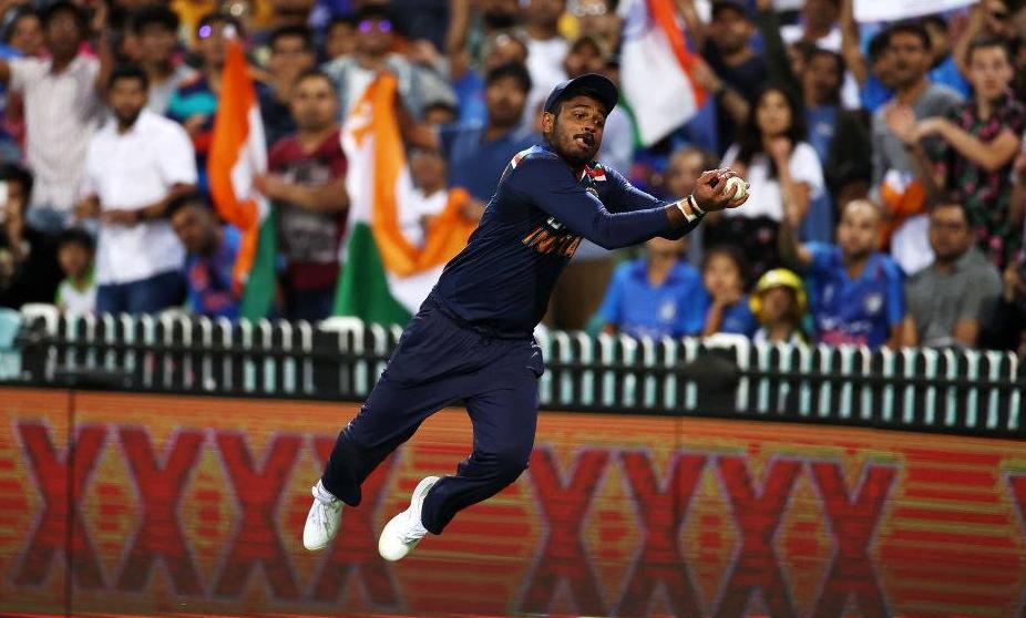 െഗ്ലൻ മാക്സ്വെൽ സിക്സെന്നുറപ്പിച്ച് ആഞ്ഞടിച്ച പന്ത് ബൗണ്ടറി ലൈനിനരികിൽ നിന്നും ഉയർന്നു ചാടിയ സഞ്ജു വായുവിൽനിന്നും അതിവിദഗ്ധമായി തട്ടിയകറ്റുകയായിരുന്നു. ക്യാച്ചെടുക്കൽ അസാധ്യമായ പൊസിഷനിൽ നിന്നുള്ള സഞ്ജുവിെൻറ മിന്നും സേവ് കൊണ്ട് ഇന്ത്യക്ക് ലാഭിക്കാനായത് നാലുറൺസാണ്. ഐ.സി.സി ഇത്തവണയും സഞ്ജുവിനെ പ്രശംസിച്ച് ട്വീറ്റ് ചെയ്തിട്ടുണ്ട്.