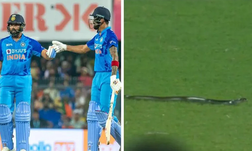 തുടർന്ന് ഗ്രൗണ്ട് സ്റ്റാഫുമാർ ഓടിയെത്തി പാമ്പിനെ ഗ്രൗണ്ടിൽ നിന്ന് നീക്കുകയായിരുന്നു.
