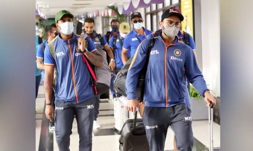 text_fieldsതിരുവനന്തപുരം വിമാനത്താവളത്തിലെത്തിയ ഇന്ത്യൻ ടീമംഗങ്ങളായ വിരാട് കോഹ്ലി, ഉമേഷ് യാദവ്, ഹർഷൽ പട്ടേൽ, കെ.എൽ. രാഹുൽ തുടങ്ങിയവർ