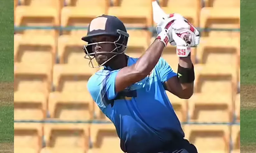 text_fieldsഅഹമ്മദാബാദ്: വിജയ് ഹസാരെ ട്രോഫി ക്രിക്കറ്റിലെ ആദ്യ മത്സരത്തിനിറങ്ങിയ കേരളത്തിന് ത്രിപുരക്കെതിരെ മികച്ച ടോട്ടൽ. ആദ്യം ബാറ്റു ചെയ്ത കേരളം വിഷ്ണു വിനോദിന്റെ സെഞ്ച്വറിയുടെയും (102 നോട്ടൗട്ട്), ക്യാപ്റ്റൻ രോഹൻ കുന്നുമ്മലിന്റെ മിന്നുന്ന തുടക്കത്തിന്റെയും (94) ബലത്തിൽ എട്ടു വിക്കറ്റ് നഷ്ടത്തിൽ 348 റൺസെടുത്തു. ഇന്ത്യൻ താരം സഞ്ജു സാംസൺ ഇല്ലാതെയാണ് കേരളം കളിക്കാനിറങ്ങിയത്.