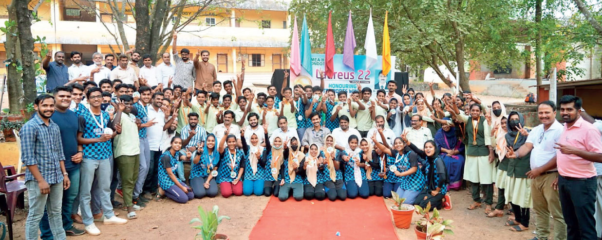 കൊണ്ടോട്ടി: നാല് പതിറ്റാണ്ടിന്റെ സന്തോഷം 40 കായിക പ്രതിഭകൾക്കൊപ്പം ആഘോഷിച്ച് ഇ.എം.ഇ.എ സ്ഥാപനങ്ങൾ. കൊണ്ടോട്ടി ഇ.എം.ഇ.എ സ്കൂളിലാണ് വ്യത്യസ്തമായ ആഘോഷം നടന്നത്. ഇ.എം.ഇ.എ ഹയർസക്കൻഡറി സ്കൂളിൽ നിന്ന് ഈ വർഷം ദേശീയ, സംസ്ഥാന കായിക മത്സരത്തിൽ മെഡൽ ജേതാക്കളായ 40 പേരെ 'ലോറസ് -22' എന്ന പരിപാടിയിൽ അനുമോദിച്ചു.