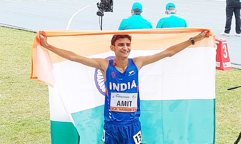 text_fields10 കി.മീ. നടത്തത്തിൽ വെള്ളി നേടിയ അമിത് ഖത്രി ദേശീയ പതാകയുമായി
