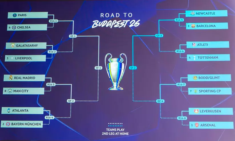 text_fieldsയുവേഫ ചാമ്പ്യൻസ് ലീഗ് പ്രീ ക്വാർട്ടർ (റൗണ്ട് ഓഫ് 16) നറുക്കെടുപ്പ് പൂർത്തിയായപ്പോൾ ഫുട്ബോൾ ആരാധകർ കാത്തിരുന്ന ഗ്ലാമർ പോരാട്ടങ്ങൾക്ക് കളമൊരുങ്ങി. റയൽ മാഡ്രിഡും മാഞ്ചസ്റ്റർ സിറ്റിയും തമ്മിലുള്ള മത്സരം തന്നെയാണ് പ്രീ ക്വാർട്ടറിലെ പ്രധാന ആകർഷണം. നിലവിലെ ചാമ്പ്യന്മാരായ പി.എസ്.ജി ചെൽസിയെ നേരിടുമ്പോൾ, ബാഴ്സലോണയുടെ എതിരാളികൾ ഇംഗ്ലീഷ് ക്ലബ്ബായ ന്യൂകാസിൽ യുണൈറ്റഡാണ്. ഈ മൂന്ന് വമ്പൻ മത്സരങ്ങളാകും പ്രീ ക്വാർട്ടറിൽ ഏറ്റവുമധികം ശ്രദ്ധിക്കപ്പെടുക.